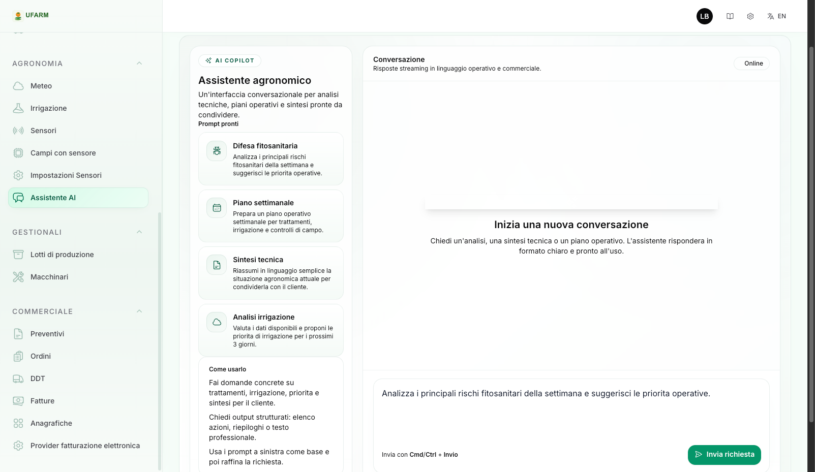 Lavora insieme all'imprenditore agricolo sulla stessa piattaforma. Comunicazione diretta, nessuna email persa.